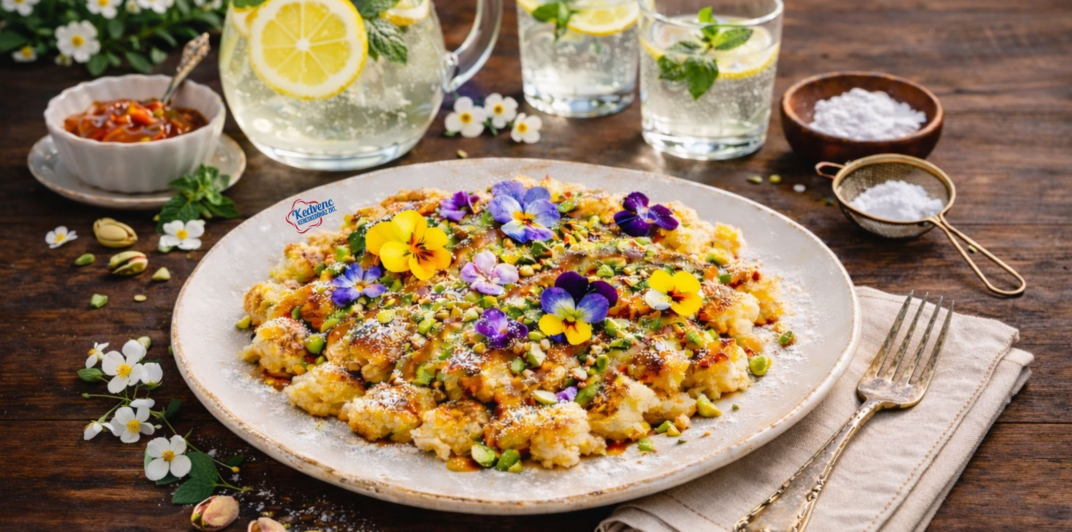 Tálald Carte d’Or sós karamell szósszal, pisztácia nugáttal és ehető virágokkal – így lesz belőle elegáns éttermi desszert, akár tavaszi menükínálatban is.