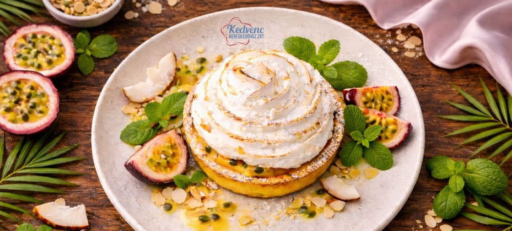 Krémes passiógyümölcsös töltelék, ropogós tésztaalap és könnyű kókuszos habcsók. A desszert készen vásárolható, csak olvasztást igényel, de pár egyszerű dekorációval éttermi szintre emelhető.
