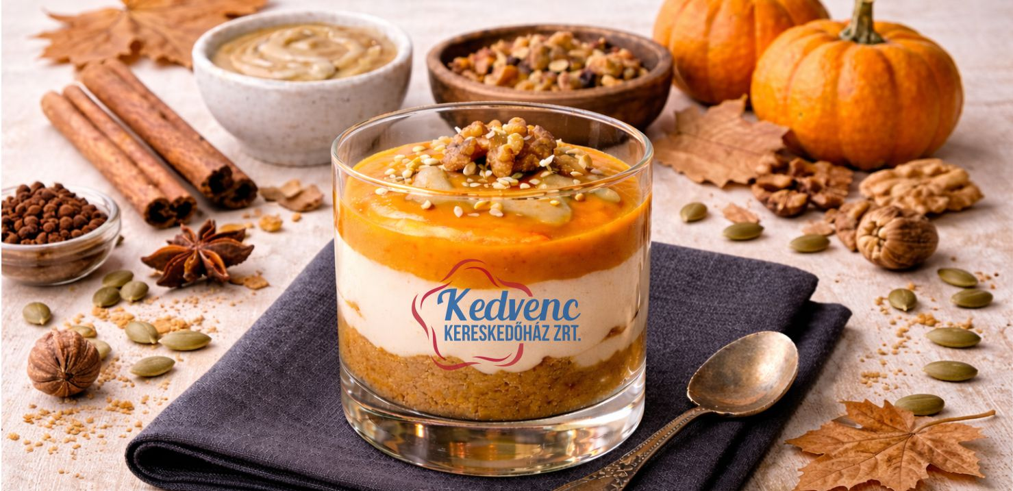 Sütőtök réteg: A sült sütőtököt tejszínnel, fahéjjal, gyömbérrel és porcukorral simára turmixoljuk. Ezt a réteget a krém tetejére simítjuk.
