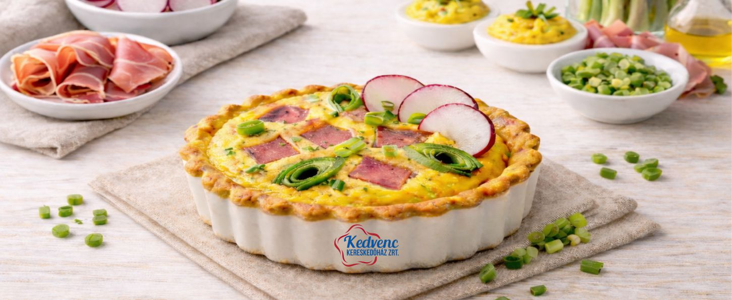 A csülköt kockát egy kevés olajon lepirítjuk, hogy pörzsanyag keletkezzen a felületén és a tésztakosárkákba osztjuk, majd ráöntjük a tojásos-tejszínes keveréket.