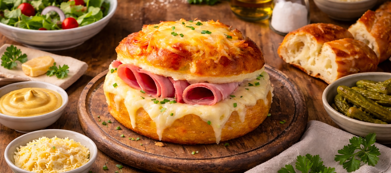 - Erre jön a sonka, majd egy réteg bechamel és reszelt trappista.