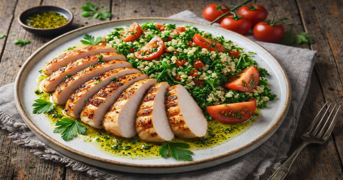 - Tálaláskor a csirke és a tabulé saláta mellé csorgatjuk.