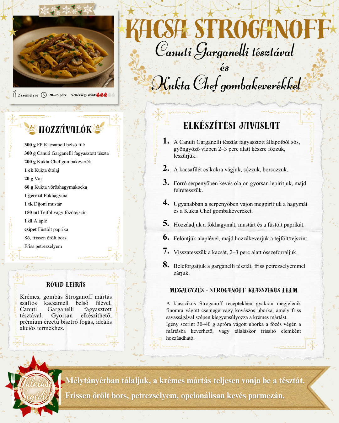 Kacsa Stroganoff Canuti Garganelli tésztával és Kukta Chef gombakeverékkel