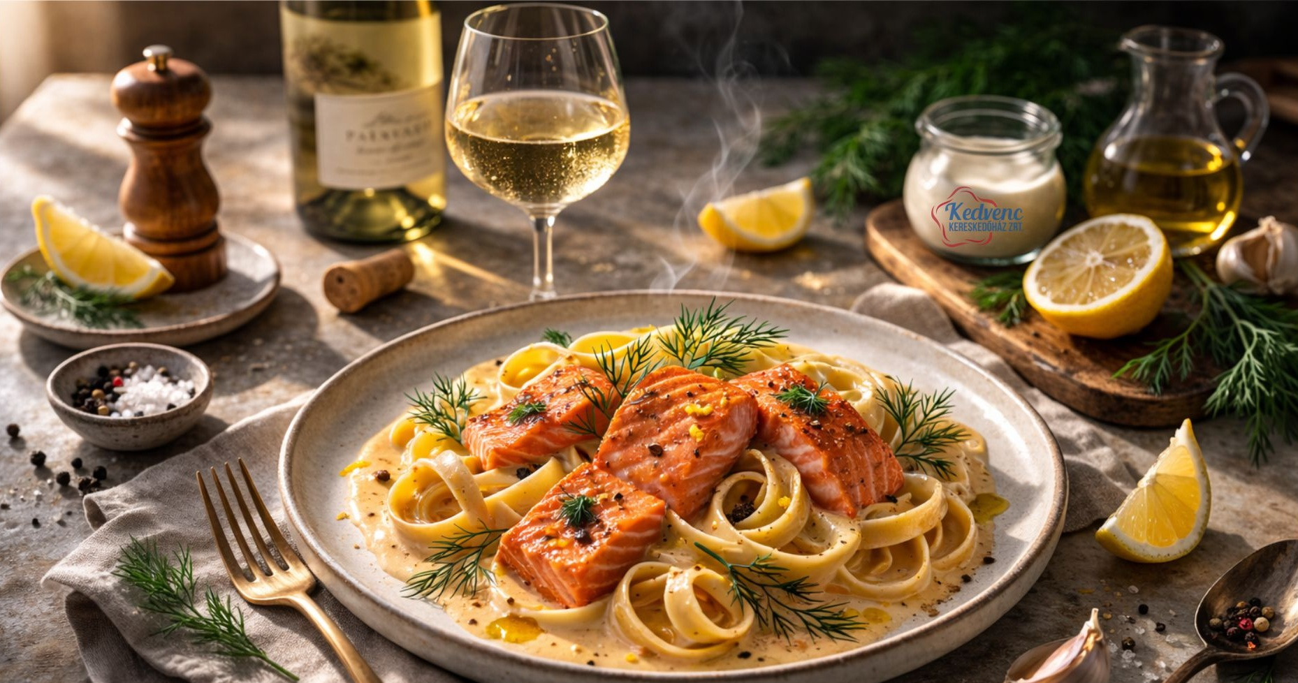 Tejszínes-vodkás lazacos tészta