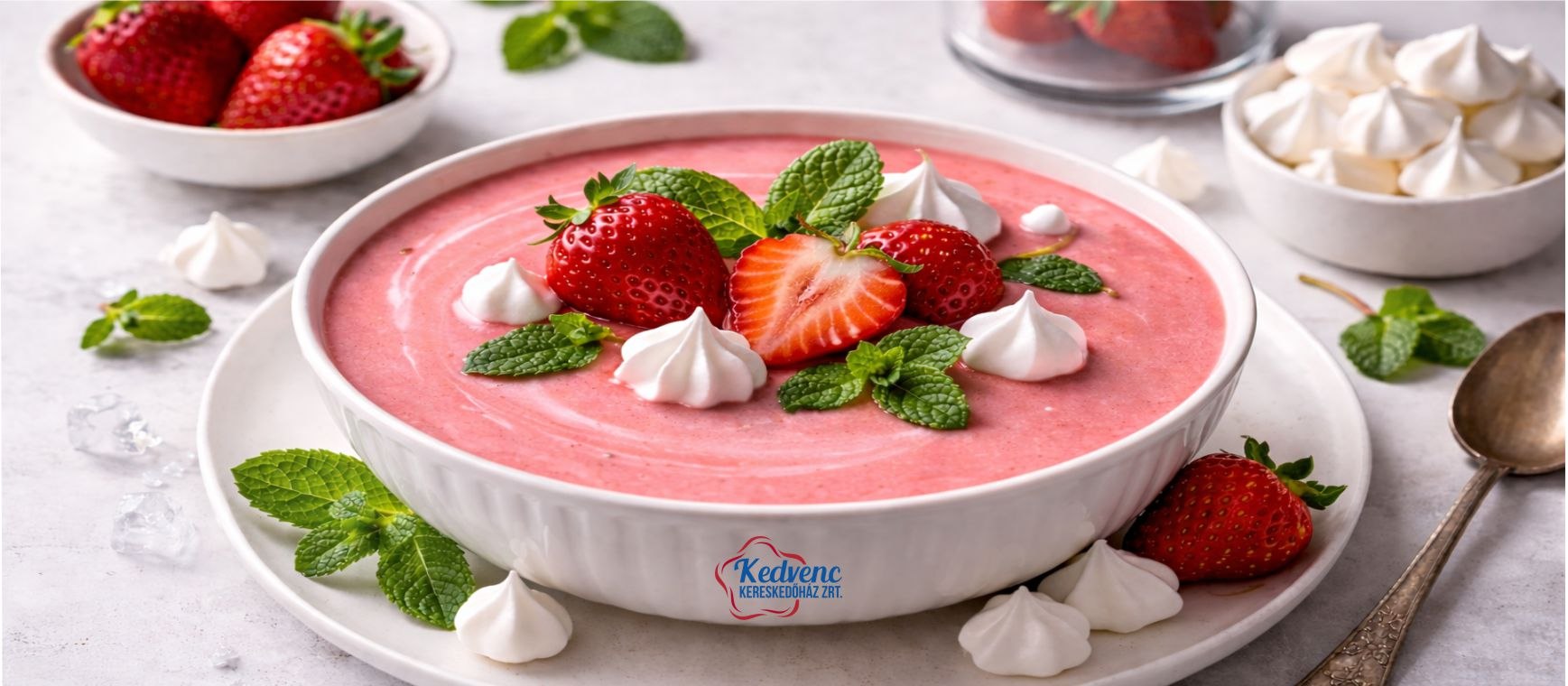 Mentás eperkrémleves habcsókkal (meringue)